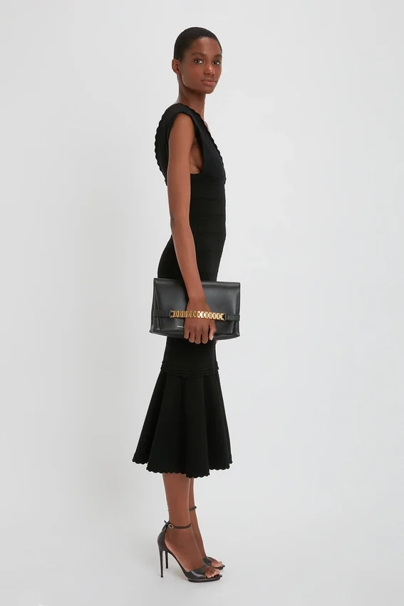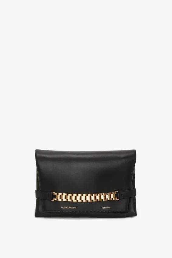 crafted in exquisite nappa leather, the chain pouch – now with a tactile and detachable handle for versatile styling – has a playful sophistication. features include a middle zip compartment, detachable strap and exterior gold-tone chain detail inspired by one of victoria’s vintage watch straps. style it under the crook of your arm, slip your wrist through the chain strap, or carry in the hand for effortless ease.
