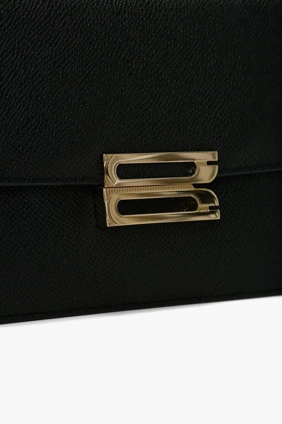 with its clean lines and slender silhouette, the dorian bag appeals to a multi-generational customer and is a hero item in the house’s leather goods edit. crafted from tactile grained leather and designed in classic black, it features the brand’s signature b buckle, which has been reworked to create a dynamic new locking system, and benefits from a removable and adjustable ‘smart strap’ and snap buttons for versatile styling as a shoulder or crossbody bag. lined in microsuede, it has an internal double compartment and small flat leather pocket for secure storage and is finished with the discreetly stamped address of victoria’s london studio (n.202) followed by a unique serial number.