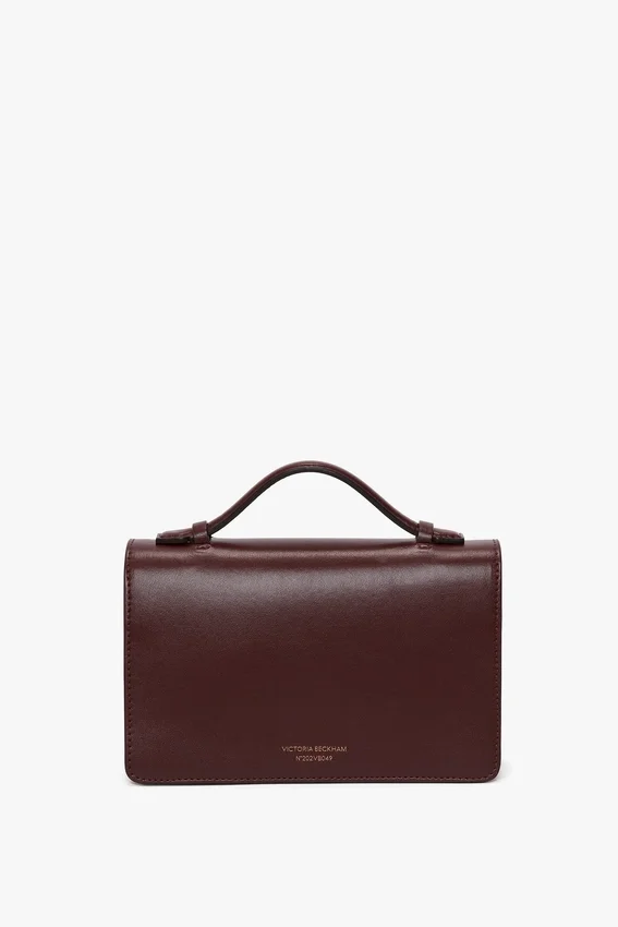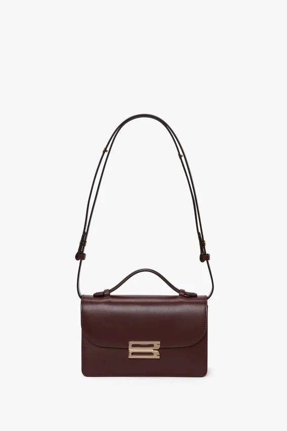 reimagined in smooth burgundy calf leather, the small dorian bag is a refined proposition for everyday use. it has a removable ‘smart strap’ with snap buttons for versatile styling as a shoulder, crossbody or clutch bag and features the house’s signature gold branding, which includes the discretely stamped address of victoria’s london studio (n.202) followed by a unique serial number. exquisitely crafted in italy, it is finished with a tactile microsuede lining.