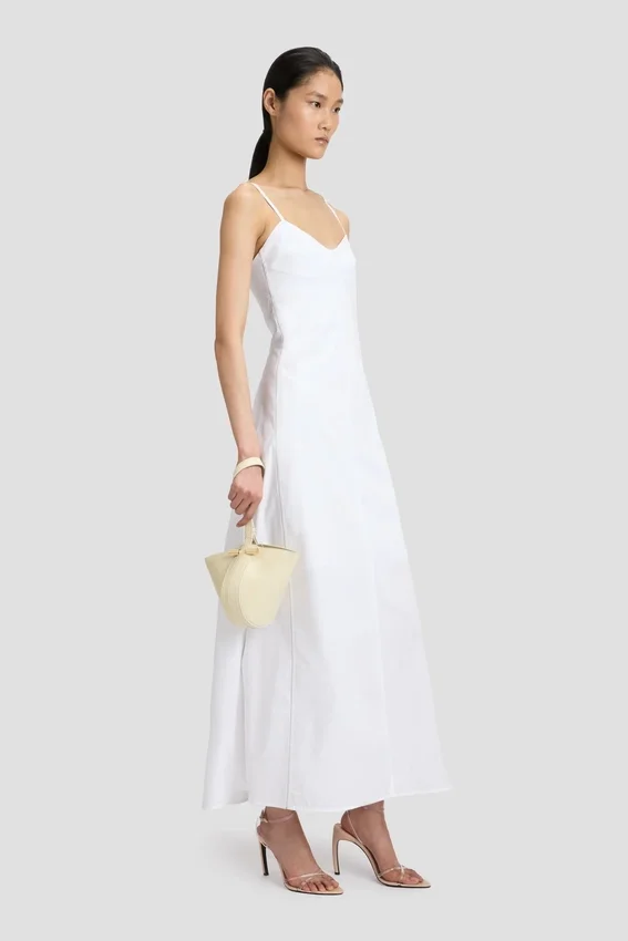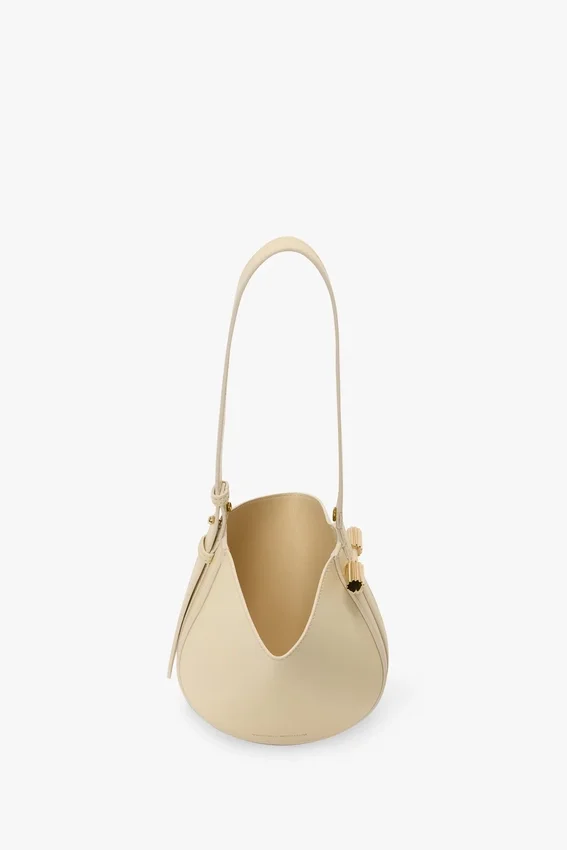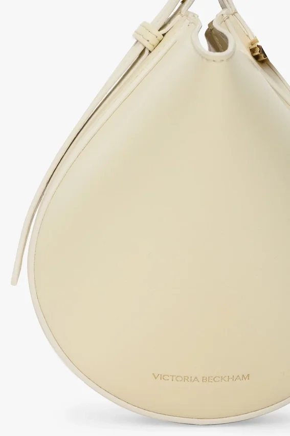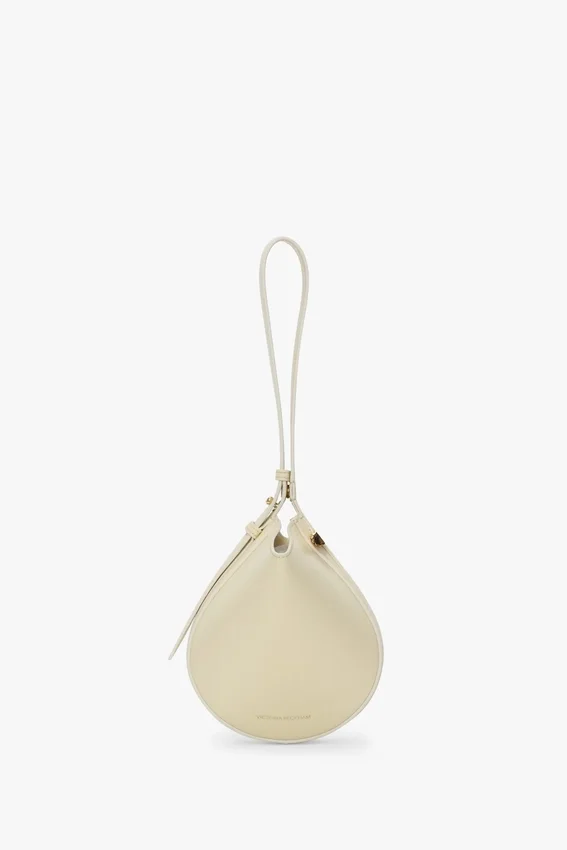 a diminutive take on the dia leather goods family, the portofino dia clutch is characterised by its charming wristlet strap. crafted in italy from smooth calf leather and presented in elegant ivory, it features the house’s signature cufflink-inspired gold hardware and victoria beckham logo and unique serial code. a practical snap button at the base of the strap and synthetic nappa leather lining complete the look.