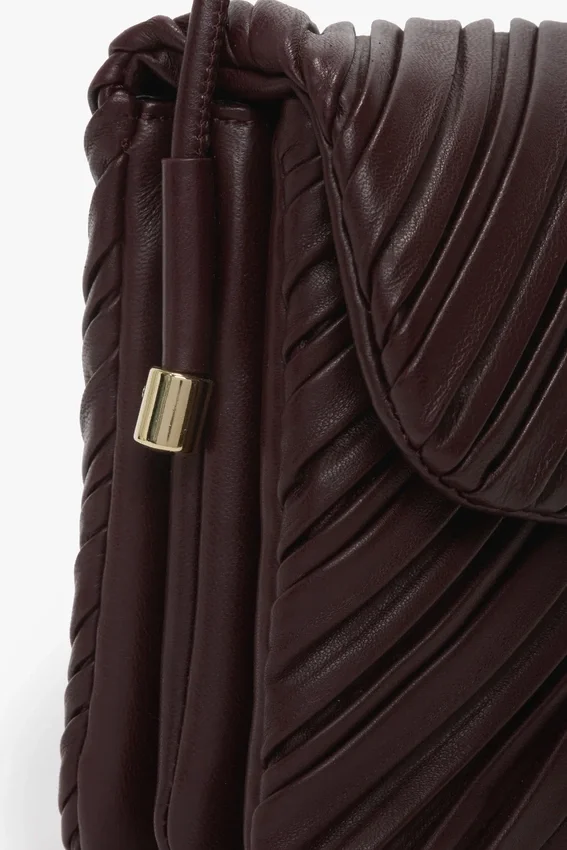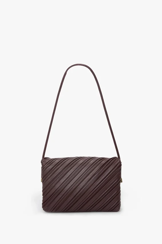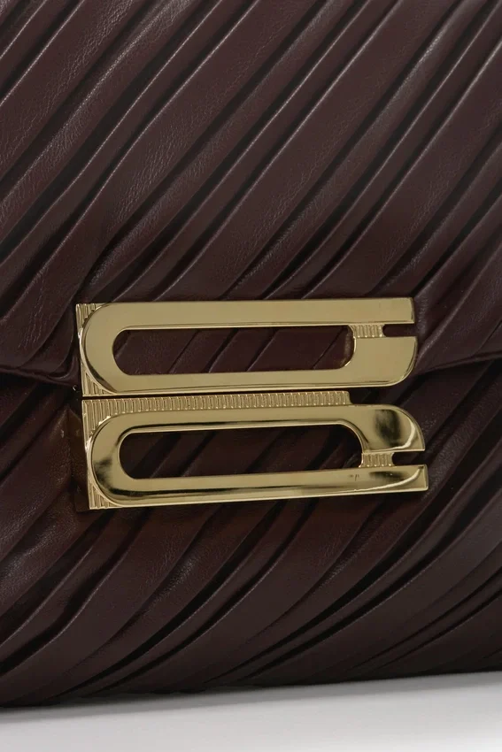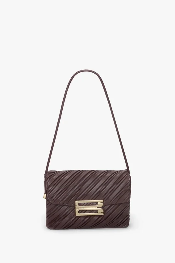 new to the dorian leather goods family, which draws inspiration from men’s leather goods, the soft dorian bag in burgundy pleated leather is defined by its tactile pleated nappa leather body. features the house’s signature gold branding with victoria beckham logo, unique serial number and b frame split lock adds polish. an internal triple compartment allows for secure storage.