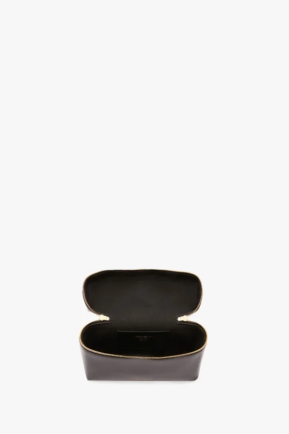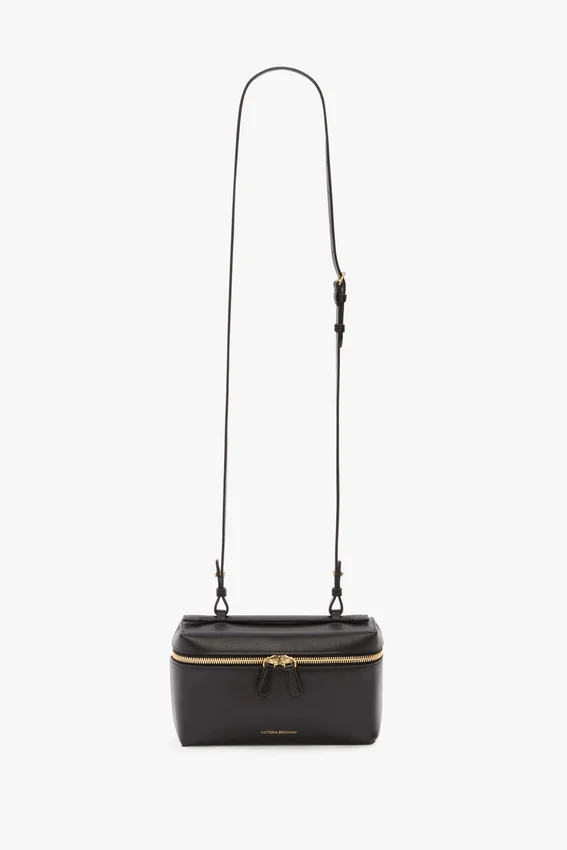 the dual purpose vanity crossbody cleverly combines practicality and polish. crafted from 100% shiny calf leather, it has a top handle and removable crossbody strap for versatile use. plus an internal flat pocket and zip closure for secure storage. microsuede lining adds a tactile finishing touch.