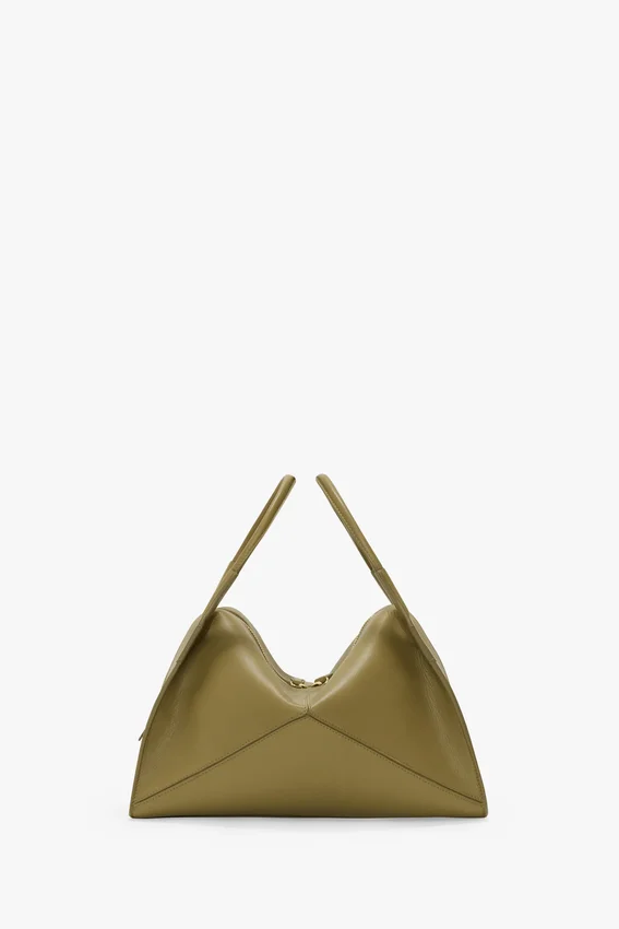 a relaxed silhouette defines the victoria plia bag. crafted from supple calf leather and lined with a tonal suede fabric, it has a zip top closure, a single compartment and removable shoulder strap to accommodate versatile styling. presented in cactus green, it has an easy sophistication.