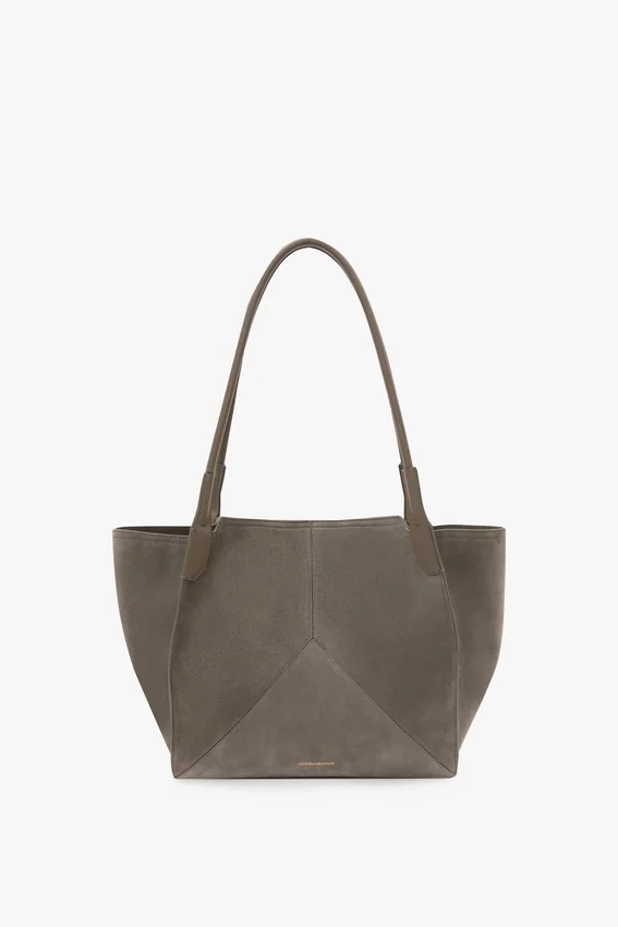 Victoria tote bag in pebble grey suede
