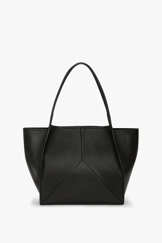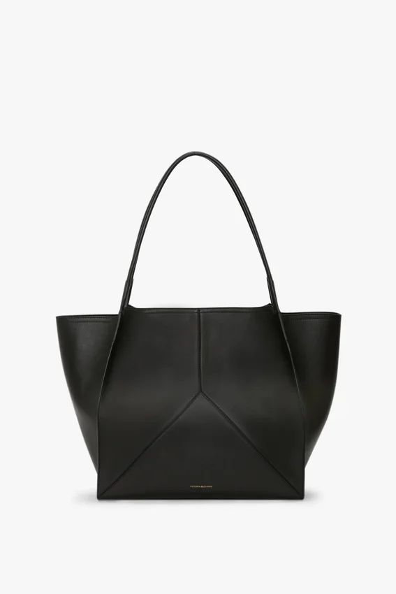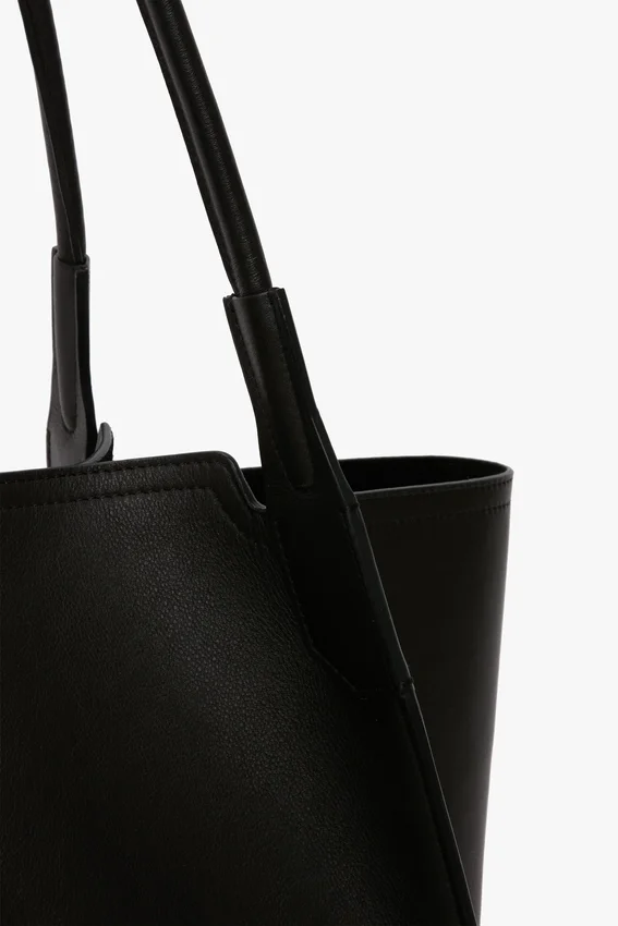 new to the victoria leather goods family, the victoria tote bag is defined by cleans lines and discreet v stitched panels. crafted in italy from soft calf leather and presented in classic black, it expresses the house’s contemporary design language. featuring signature gold branding, including a victoria beckham logo and unique serial code, inside the bag, the victoria tote is finished with a tactile suede bonded lining. modern and minimal, it is an ideal accessory for everyday wear.