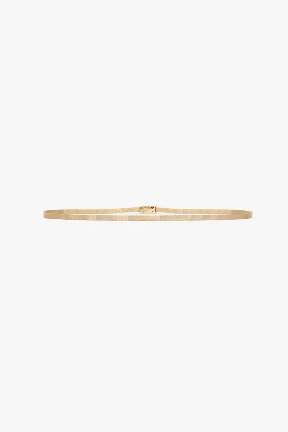 an elegant addition to the house’s accessories edit, the brass micro dorian belt has a restrained but refined silhouette. presented in an attractive shade of light gold, it is ideal for adding a delicate point of difference to masculine tailoring or feminine separates.