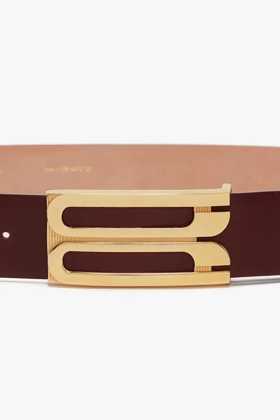 Add a contemporary point of difference to your new-season wardrobe with the Jumbo Dorian Belt, presented in a subdued shade of Burgundy for the new season. Crafted from smooth calf leather and embellished with gold hardware for an elevated finish, it will bring a sophisticated finishing touch to any outfit.