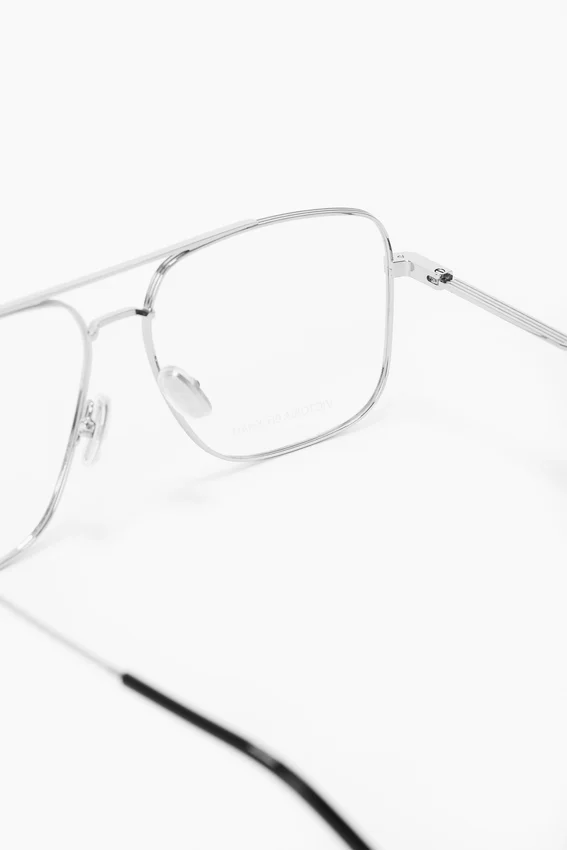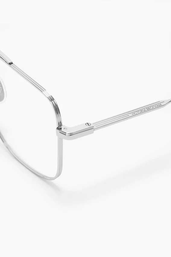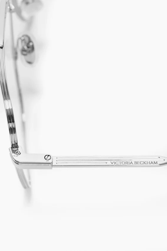 the fine metal optical frame of these sunglasses creates a refined silhouette. characterised by a sophisticated temple hinge, they have a v-cut logo and are presented in silver with a dark tortoiseshell tip.