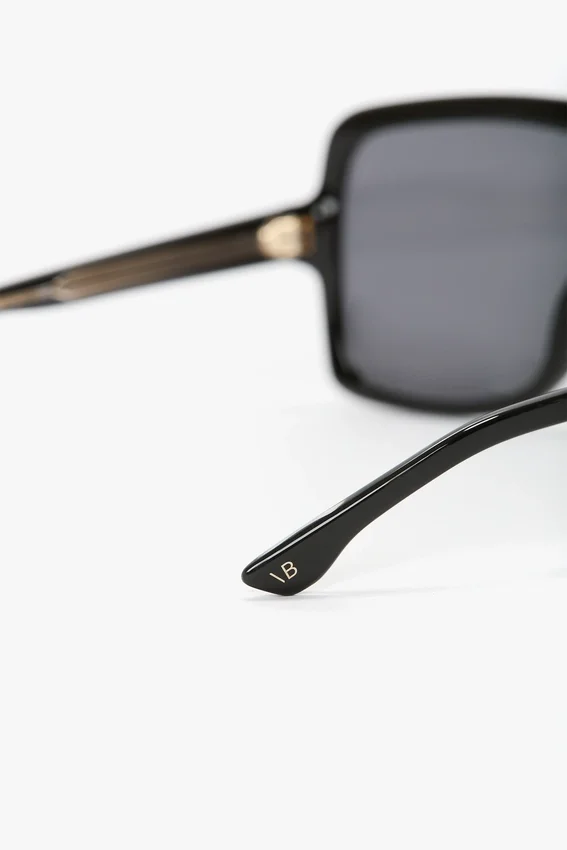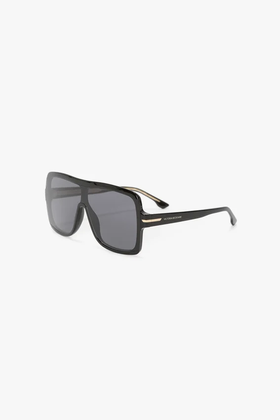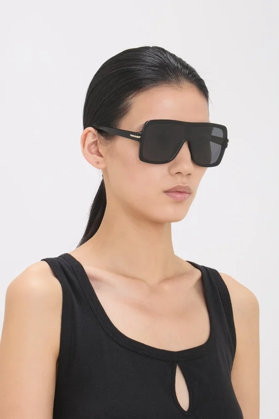 defined by their squared flat mask, these sunglasses are crafted in acetate and presented in classic black with contrasting grey lenses. they are embellished with the house’s signature v-cut logo.