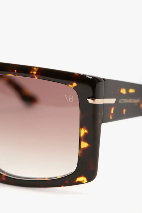 with an oversized flat top, these sunglasses make a bold statement. crafted from acetate with ultra-thin lines, they include a guilloche motif inspired by the texture of leather goods and jewellery. presented in classic havana, they embody contemporary flair.