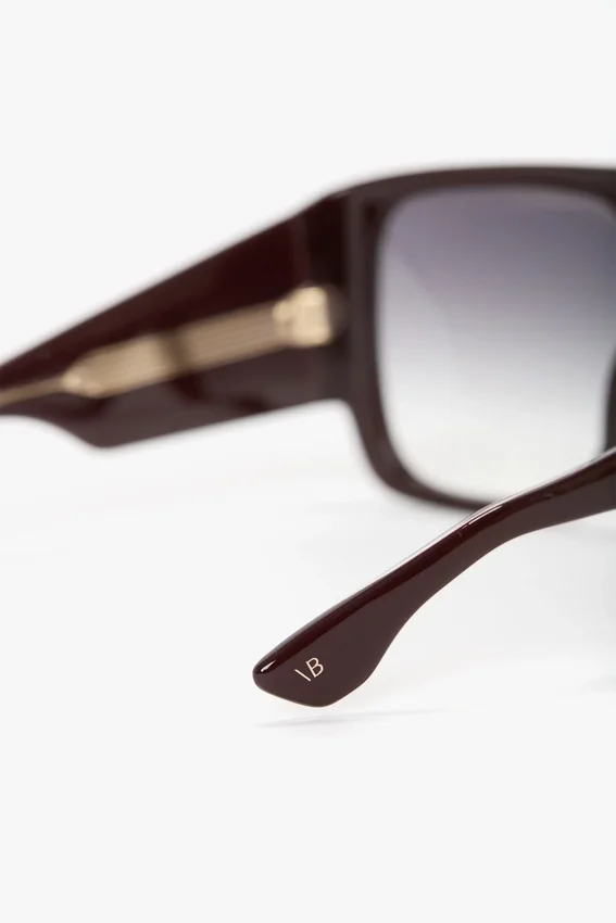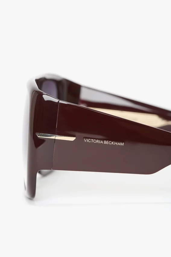 crafted from acetate, these sunglasses have an oversized flat top for a distinctive silhouette. they are embellished with a discreet v-cut logo and presented in a luxurious shade of burgundy.