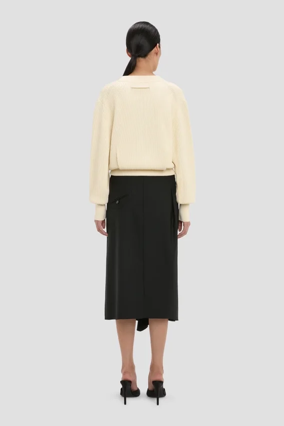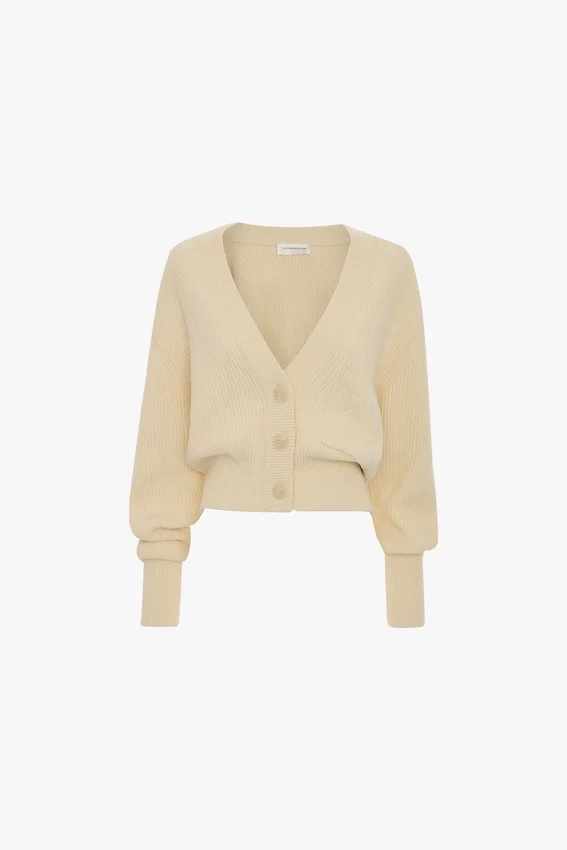 A traditional Fisherman’s stitch brings a tactile finish to the cotton-blend Cable Pocket Cardigan in Ivory. Designed with a low-front V-neck, cropped hemline and pleated back, it has a subtly feminine silhouette.