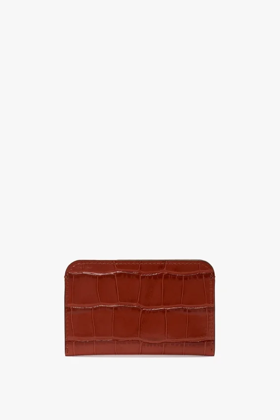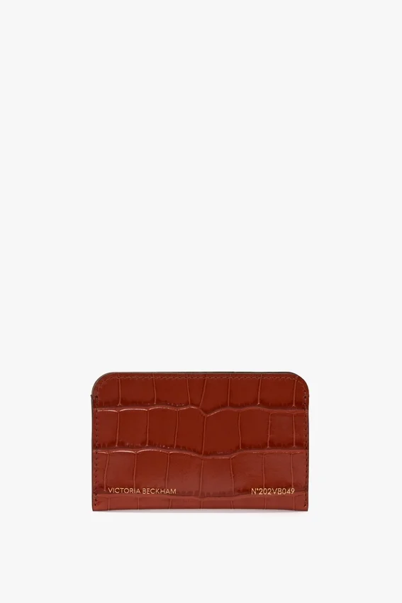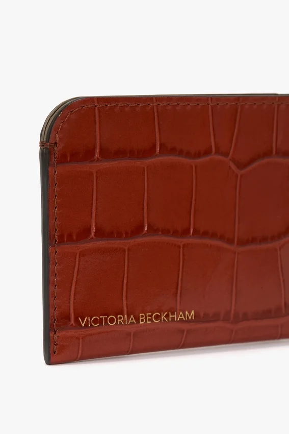 an elevated essential, the envelope card holder is presented exclusively in a bold shade of brick red. crafted in italy from a textured croc-effect leather, it features three card dividers and the distinctive victoria beckham stamp and serial number.