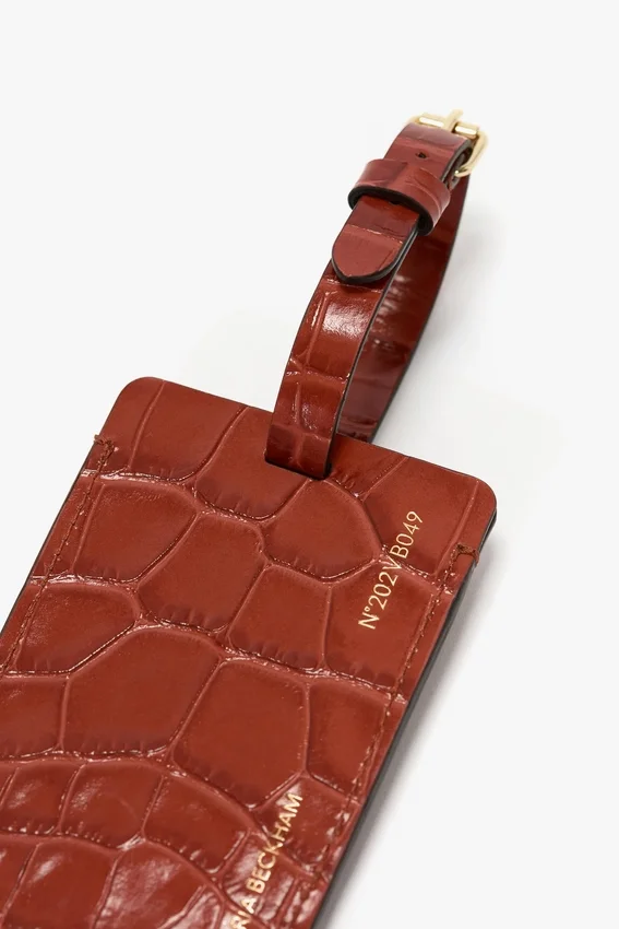 discreet luxury is a hallmark of the victoria beckham brand and it’s embodied in the house’s signature luggage tag. crafted in italy from a smooth croc embossed leather and presented exclusively in brick red, it features an adjustable strap and concealed detail window.