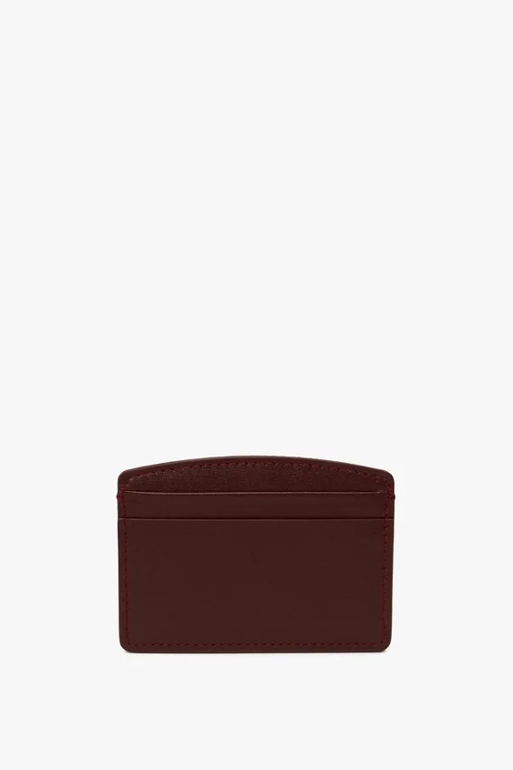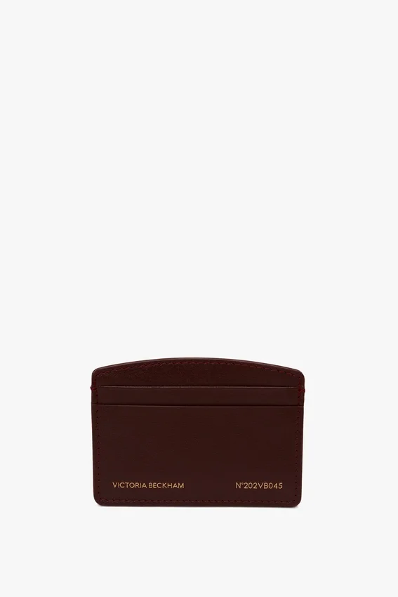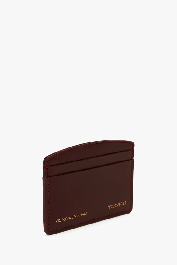 an elevated essential, the victoria card holder in burgundy is crafted in italy from a textured semi-shine calf leather. it has a single internal compartment and four card slots, with a victoria beckham stamp and serial number adding the house’s signature finishing touch and reflecting its unerring attention to detail.
