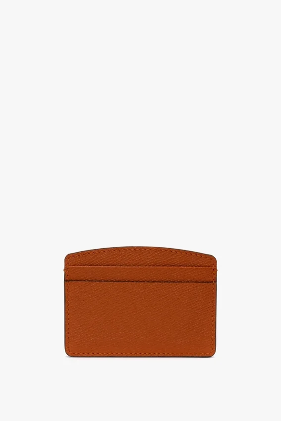 an elevated essential, the victoria card holder in burnt orange is crafted in italy from a textured grained calf leather. it has a single internal compartment and four card slots, with a victoria beckham stamp and serial number adding the house’s signature finishing touch and reflecting its unerring attention to detail.