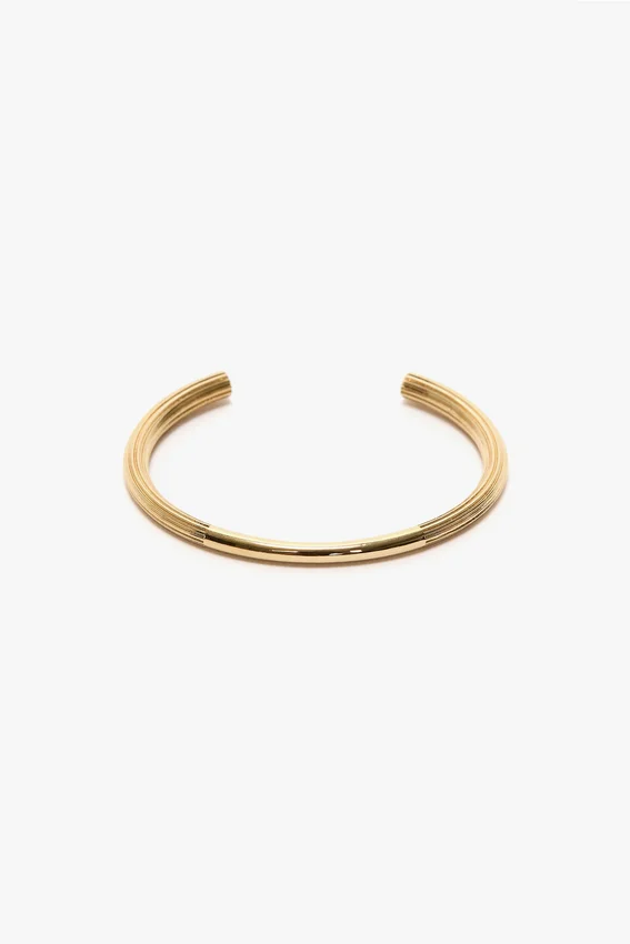 meticulously made from brass in italy, the cufflink bracelet is a sculptural arm cuff that brings a masculine undertone to a feminine adornment. nickel-free and presented in light gold, it exudes effortless sophistication.