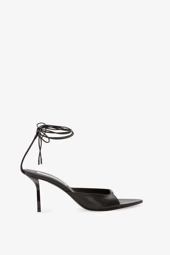 an almond-shaped open toe gives the eliza stiletto sandal its distinctive personality. crafted from smooth nappa leather with a 75mm lacquered heel, it is lined in leather and has a padded in-sock for added comfort.