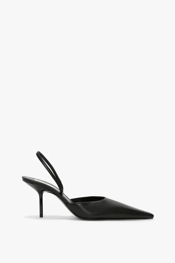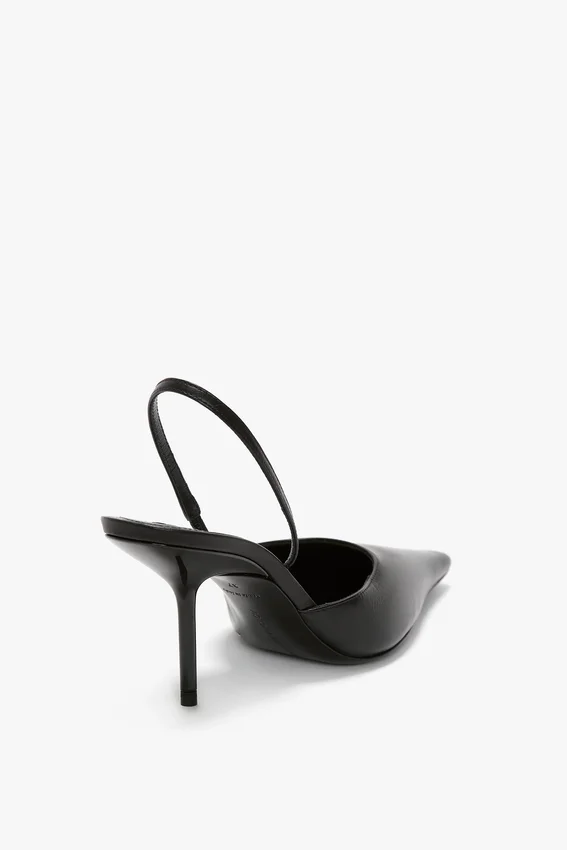 a new addition to the sloan footwear edit, the sloan halter back in black comes in smooth calf leather with a 75mm super-skinny tonal lacquered heel. a pinched toe creates an elongating silhouette, while a padded insock ensures absolute comfort.