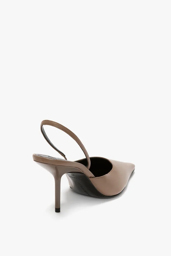 a new addition to the sloan footwear edit, the sloan halter back is crafted from smooth calf leather and presented in dove grey. it has a 75mm super-skinny tonal lacquered heel and a pinched toe for an elongating silhouette. a padded insock ensures absolute comfort.