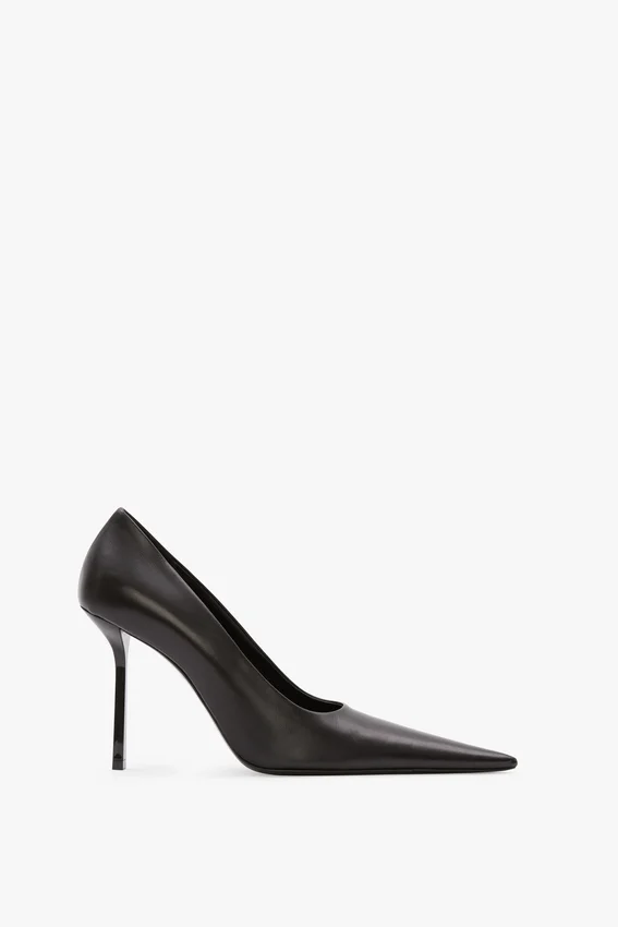 a classic stiletto pump, the victoria is crafted from luxurious kid leather and lined in leather with a padded in-sock for added comfort. defined by its pointed, closed toe silhouette and 100ml black lacquered heel, it is a polished addition to the house’s footwear edit.