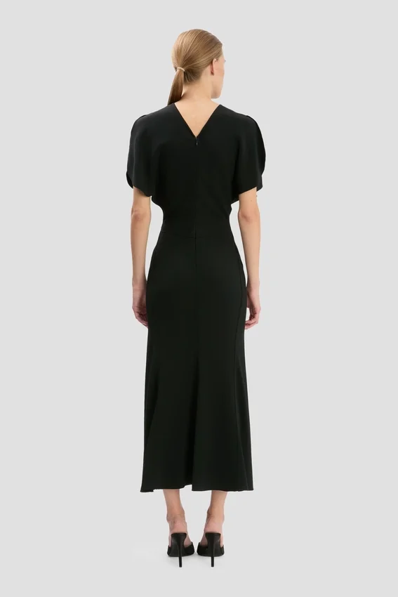 Reimagined in universally appealing Black, this elegant Bela Midi Dress has a gathered front, tulip sleeve detail and slight V-neck at the back. Immaculately cut to accentuate the waist in a classic fit-and-flare silhouette, the Bela Midi Dress is rooted in femininity and exudes a modern refinement.