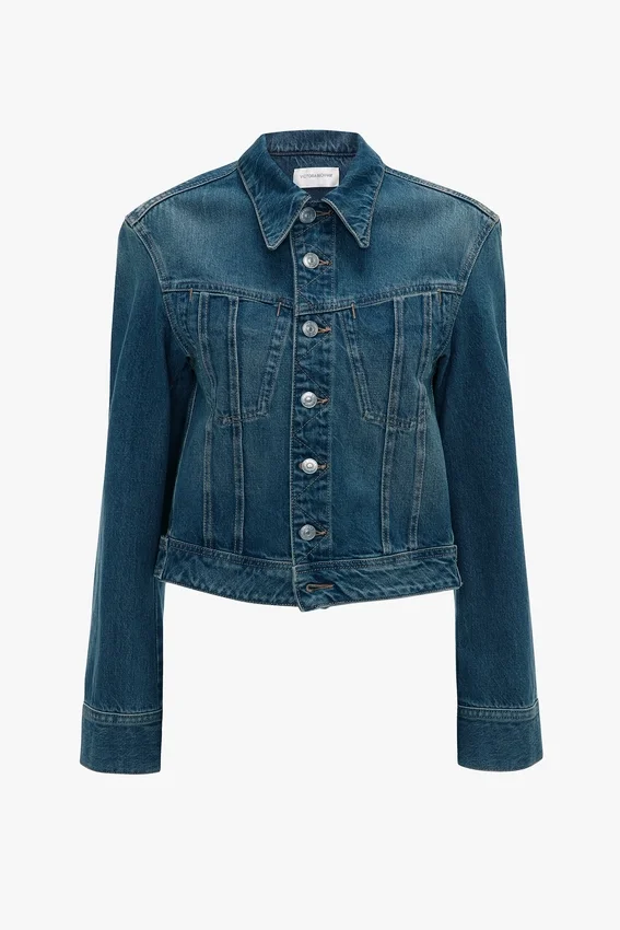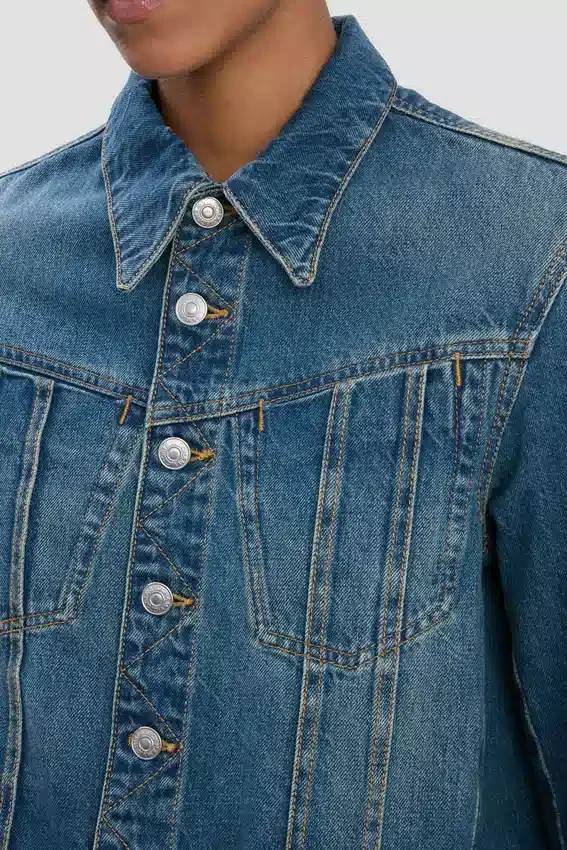 • mid blue wash, cropped denim jacket