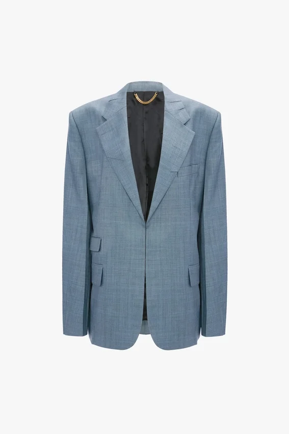 Meticulously crafted from 100% wool, the Notched Lapel Jacket is single-breasted and seat-length with butterfly lining. Defined by distinct detailing on the jacket melton, it is presented in Cloud Blue for a feminine take on traditional tailoring.