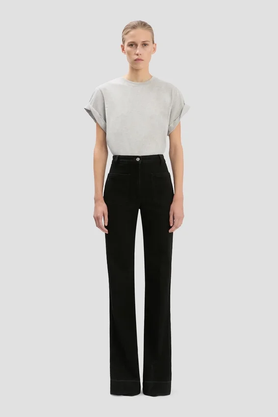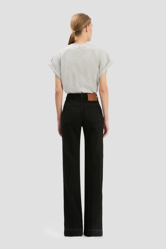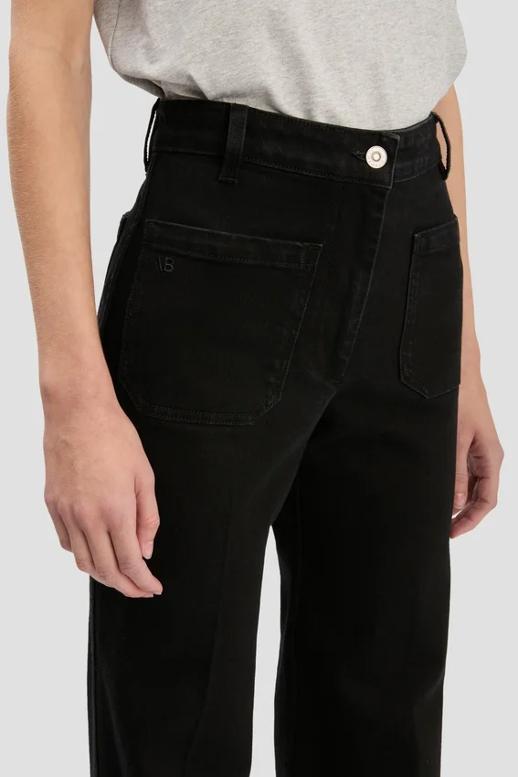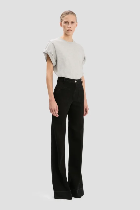 crafted from 100% cotton denim, the alina jeans have a high waist and wide leg for a figure-flattering silhouette. presented in washed black for an elevated take on traditional denim, they have patch pockets, a victoria beckham embroidered logo and leather patch.