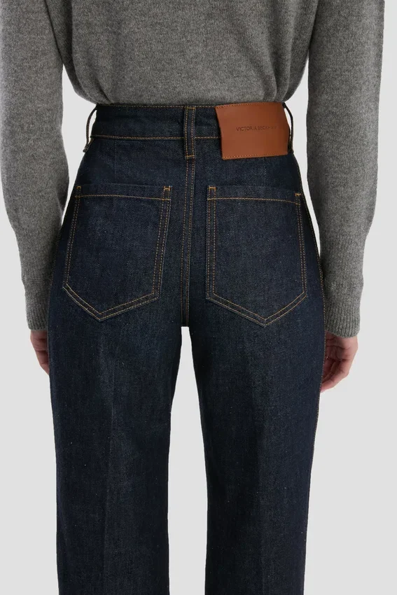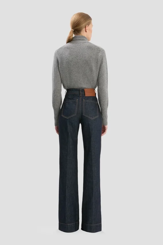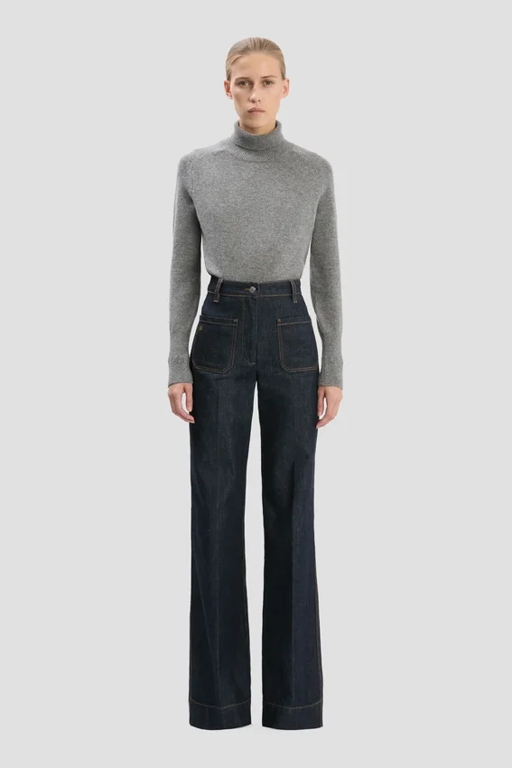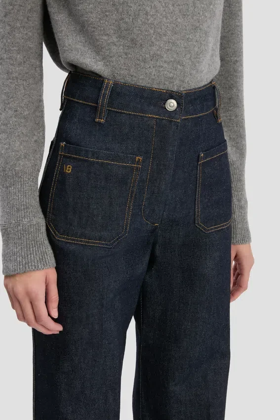 crafted from stretch denim and presented in a flattering indigo wash, the house’s signature alina jeans have a high waist and wide leg for a classic 1970s silhouette, with traditional patch pockets adding convenience and polish. a leather patch and victoria beckham embroidered logo complete the look.