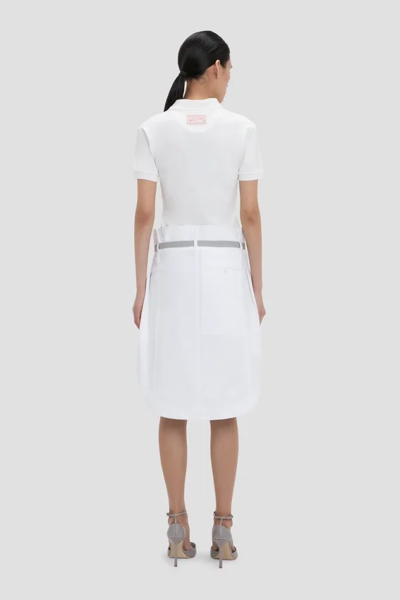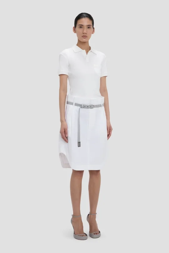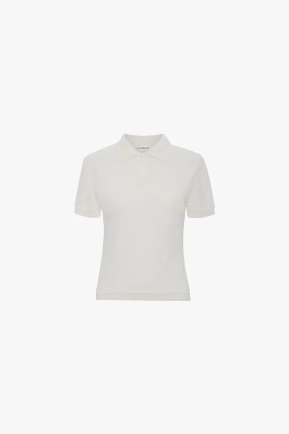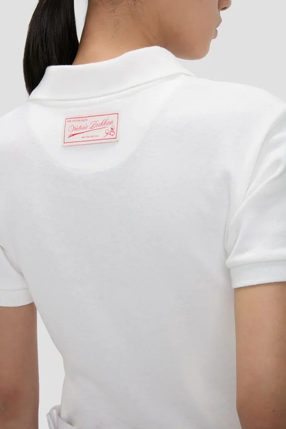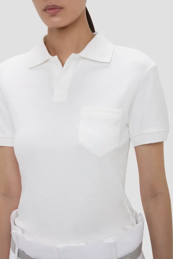 crafted from a cotton-linen blend, the polo collar top in crisp white marries preppy style with sophisticated design codes. a smart collared neckline brings structure to the silhouette, while short sleeves add a relaxed nonchalance.