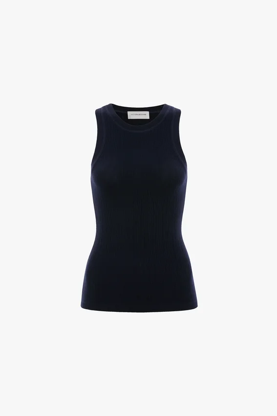 Designed for a slim fit, it has a relaxed racer-back design and a contrasting Victoria Beckham monogram at the centre back neckline.