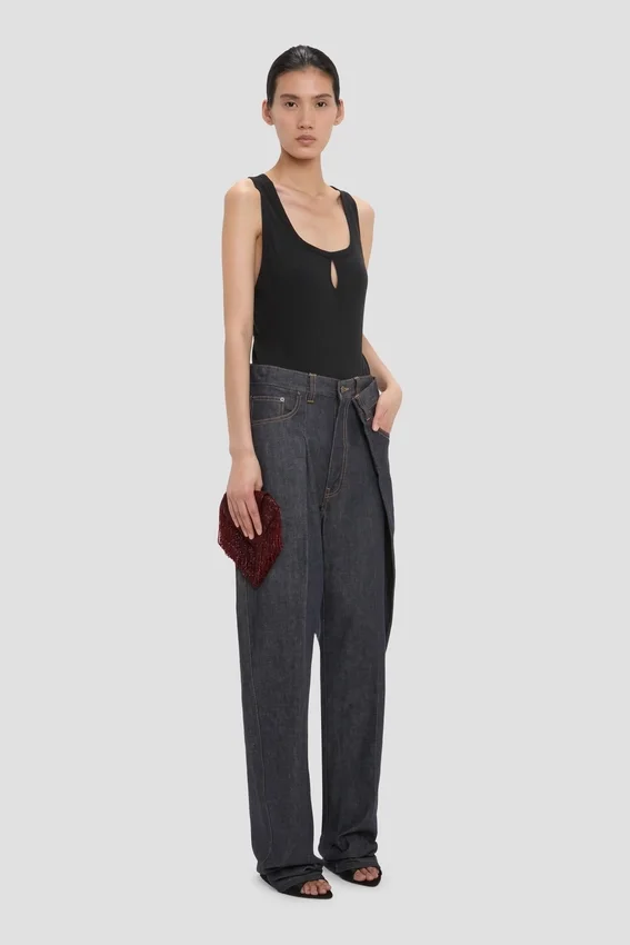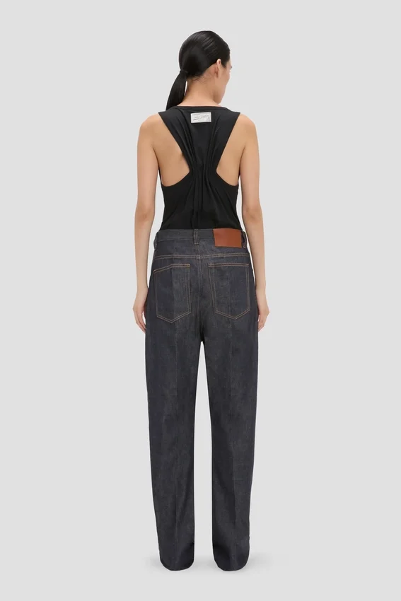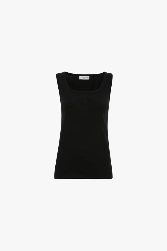 a foundational item in any wardrobe, the split tank top has a rounded square neckline and low hip hemline. crafted from a cotton-linen blend, it has a pleated detail at the back and is presented in classic black for longevity and versatility.