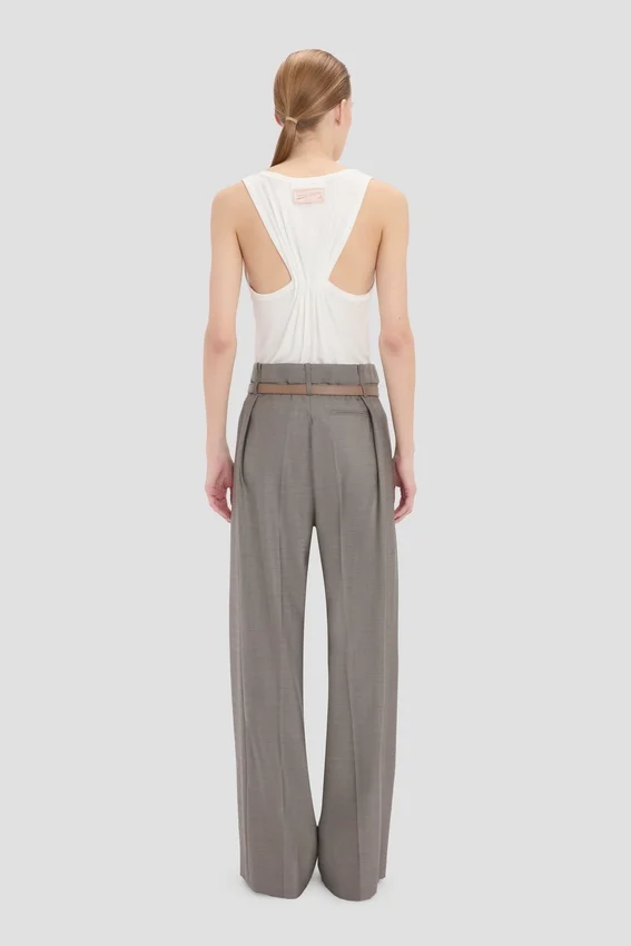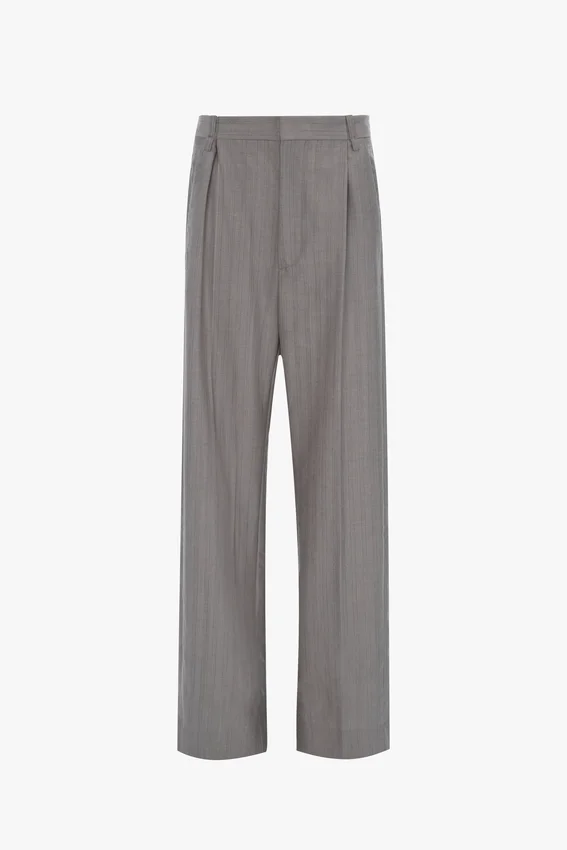 Crafted from a light herringbone fabric, the Pleated Waist Trousers have a relaxed silhouette and are presented in a versatile Nickel colourway. They have a mid-rise, self-fabric waistline, long-length hemline and convenient side pockets.