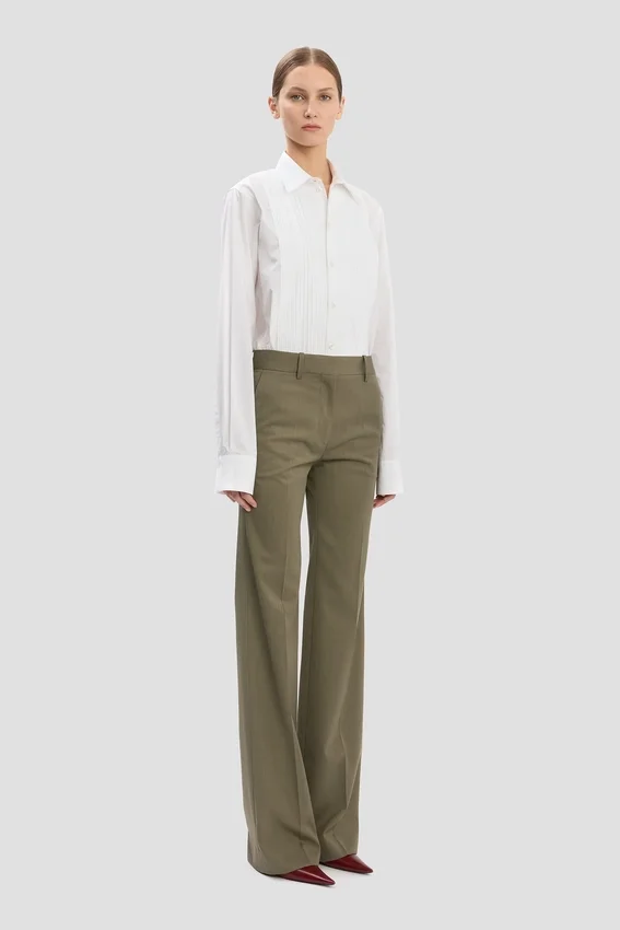 meticulously tailored in a wool blend and presented in attractive sage, the tailored straight leg trouser is a classic wardrobe staple. cut with a high-rise waistline and straight leg and with slanted front pockets, it has a streamlined silhouette that looks effortlessly polished.